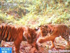野外實拍:印尼蘇門答臘虎玩耍