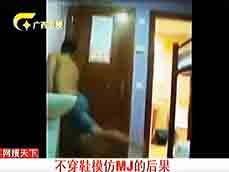 跳MJ的舞蹈釀成"悲劇" 下次一定要穿鞋