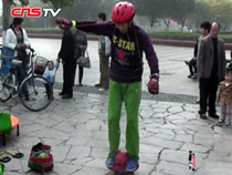 河南男子自創另類健身 動作滑稽