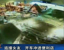 實拍:男子開車追撞女友 撞進超市