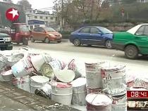 貨車下坡失控撞到路墩 六百桶涂料"刷"白路面