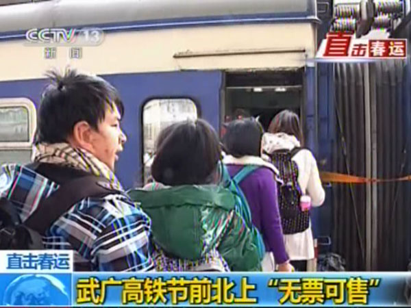 廣鐵集團12號通報稱,春節(jié)前武廣高鐵北上開往武漢方向各趟列車車票都已售罄,從12號起武廣高鐵沿線各站已無票可售,提醒需乘此線路的乘客選擇其他方式出行。