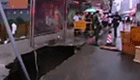 沈陽一公交站地面塌陷乘客掉入深坑