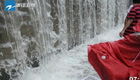 杭州街頭積水成"瀑布"