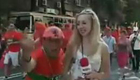 美女主持人直播球賽 被足球砸中腦袋