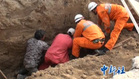 阜康工地坍塌 消防人員刨出活埋者