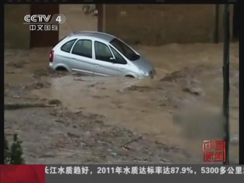 西班牙洪水沖毀街道 車輛“漂移”