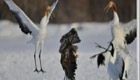 老鷹大戰丹頂鶴爭奪食物