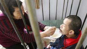 母親含淚將兒子鎖鐵籠30多年