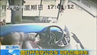 浙江衢州:路燈桿擊穿公交車 司機忍痛停車