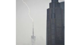 廣州塔被閃電擊中 詭異天氣白晝如夜