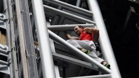廣州一男子爬上地鐵橋跳上地鐵頂部逼停地鐵