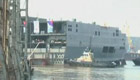 俄首艘“西北風”級兩棲攻擊艦船尾下水