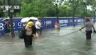 實拍都江堰大雨 居民街上撈魚