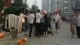 天津城管與擺攤梨農起沖突