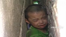 兩男孩被卡墻縫動彈不得
