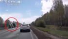 實拍俄羅斯一貨車"翻跟頭" 或因超速