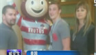 美女主持人直播球賽 被足球砸中腦袋