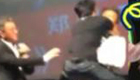 美女主持人直播球賽 被足球砸中腦袋