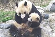 實拍熊貓媽媽給寶寶洗澡
