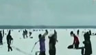 俄結冰湖面突然裂開 數百冰釣者狂奔逃命