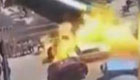 油罐車側翻眾人圍觀 車輛瞬間爆燃如火海
