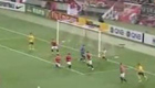 美女主持人直播球賽 被足球砸中腦袋