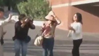 【解說】在酒店門口幾位關注女性權益問題的大學生手持標語呼吁社會關注女性安全。她們表示自己非常同情“彎彎”的遭遇,并希望社會能夠重視女性的權益。