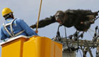 逃跑黑猩猩被困電線桿