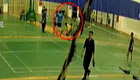 美女主持人直播球賽 被足球砸中腦袋