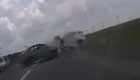 摩托躲過兩車相撞夾縫逃生