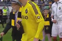 瑞典足球賽現“高齡球童” 球員攙扶入場
