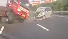 實拍面包車撞飛大貨車