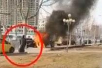痛心!轎車路邊起火 女童被困車內