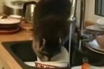 小浣熊溜進廚房“洗碗”