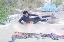 男子在江邊放生80斤蛇