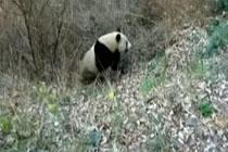 實拍野生大熊貓下山喝水 奔跑在田野間