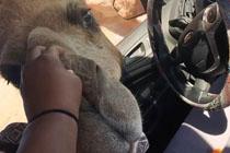 駱駝截停女司機 把頭伸進車窗搶走午餐