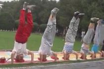 大爺大媽倒立唱歌健身