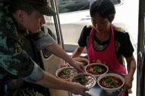 飯店老板免費給救援隊官兵送面送水