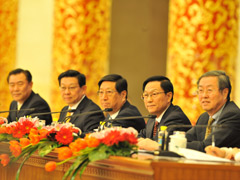 - 主持人李連寧:2010-3-6 10:04出席今天記者會并回答大家提問的嘉賓有:國家發(fā)展改革委員會張平主任、財政部謝旭人部長、商務(wù)部陳德銘部長和中國人民銀行周小川行長。他們將就加強和改善宏觀經(jīng)濟調(diào)控來回答大家的提問。