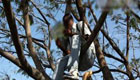 【解說】事故現(xiàn)場,被困婦女一只手死死抓住樹干,另一只手則緊緊的抱住4歲的女兒,呼喊求救。而此時農(nóng)田邊上的排水渠受到洪流影響,水流非常大。救援人員查看周邊情況后發(fā)現(xiàn),跨過排水渠是通向農(nóng)田的唯一途徑。根據(jù)現(xiàn)場掌握情況,救援人員立即架設(shè)起二節(jié)拉梯,將梯子橫跨在水渠上,但由于水流太急,二節(jié)拉梯被洪水沖刷得吱吱作響,很不穩(wěn)固,兩名救援人員綁好安全繩,一步一挪的走到排水渠的另一邊,接過婦女手中的孩子,攙扶起婦女,向安全地帶返回。