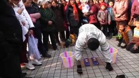 牛人小伙腳踩雞蛋手提水桶 眾人圍觀