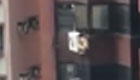 實拍一男子被捉奸 裸身掛在高樓空調外機