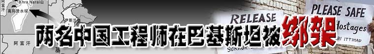 兩名在巴基斯坦從事水利工程建設的中國工程師9日在巴國西北邊境的部落地區被武裝分子綁架,巴安全部隊展開積極營救工作。中國政府敦請巴方全力解救人質。涉嫌綁架中國人質的匪首提出人質交換要求,相關斡旋與談?/span>