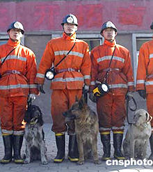 圖:搜救犬參與尋找阜新礦難最后一名失蹤者