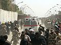 圖文報道:救護車停在巴格達踩踏現場的人群中