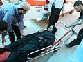 圖文報道:一名受傷的婦女被送進醫院
