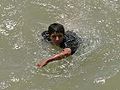 落水者游向岸邊