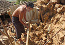 震中地區的災民清理廢墟